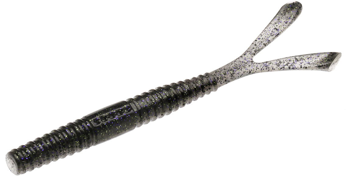 The 13 Fishing Joy Stick is a unique soft plastic worm/creature bait hybrid that fuses a ribbed stickworm profile with 13 Fishing's Rabbit Ear appendages to create an elongated Y-shaped bait. The bait has a considerable amount of mass for a soft plastic (each bait weighs roughly 3/8 ounce) and the Rabbit Ear appendages exhibit significant kicking and vibrating motion that is much more pronounced than a ribbontail worm appendage. The Joystick does well on all sorts of rigs and presentations, including drop shot, shakey head, Tokyo rig, or just a good ol' Texas rig or Carolina rig.