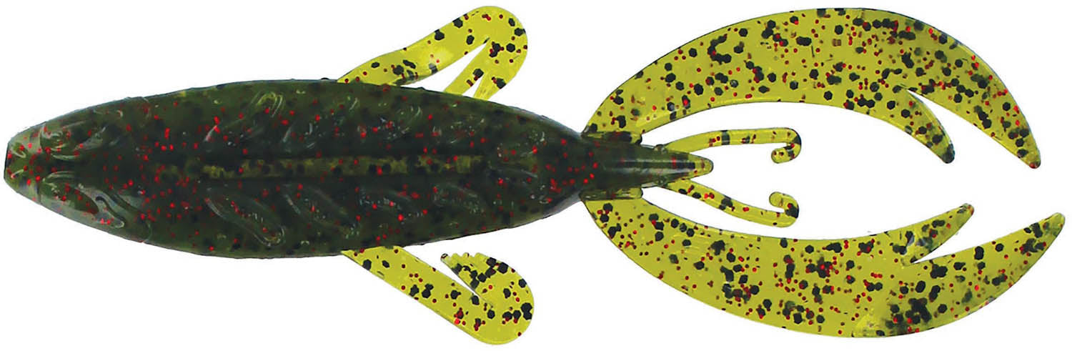 - Like soft plastic frog, but designed for more subsurface applications like lipping, pitching, Carolina rigging, or even as a jig trailer.