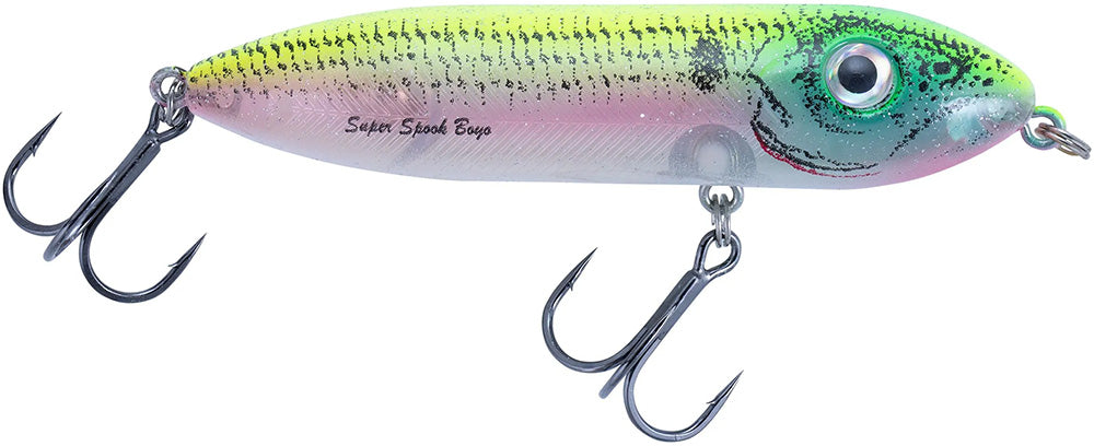 - Available in a variety of colors and measuring in at 3 inches and a healthy 3/8 oz, the Heddon Super Spook Boyo Topwater Walker is a must have for serios Topwater anglers! Secure yours today!