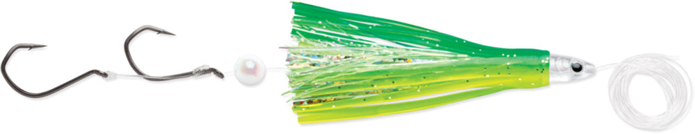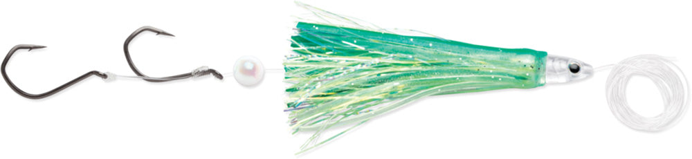 - Designed with an Arrow Shaped Head with a Multi Layered Skirt to create a Lively Action which combines with the UV Reflective Finishes and Everglo Material composition to give it a Glow in the Dark effect that big fish cant resist!