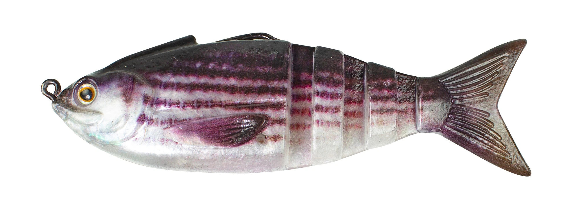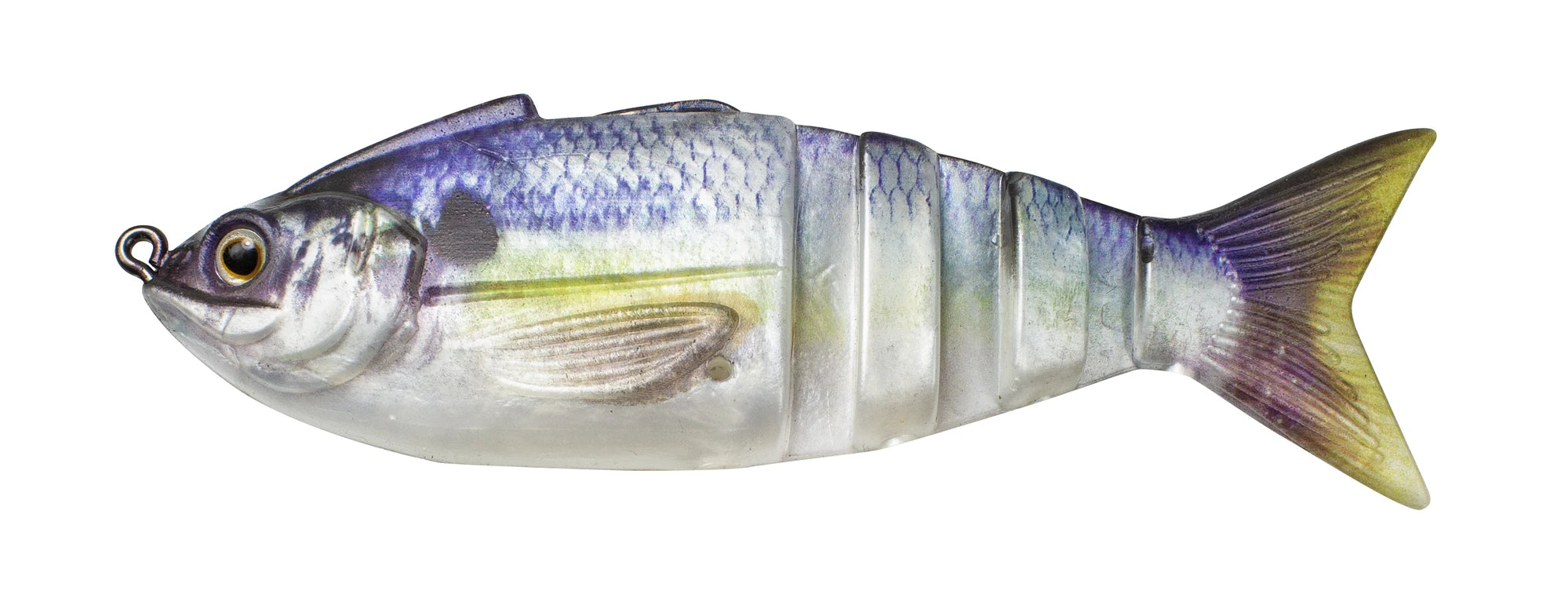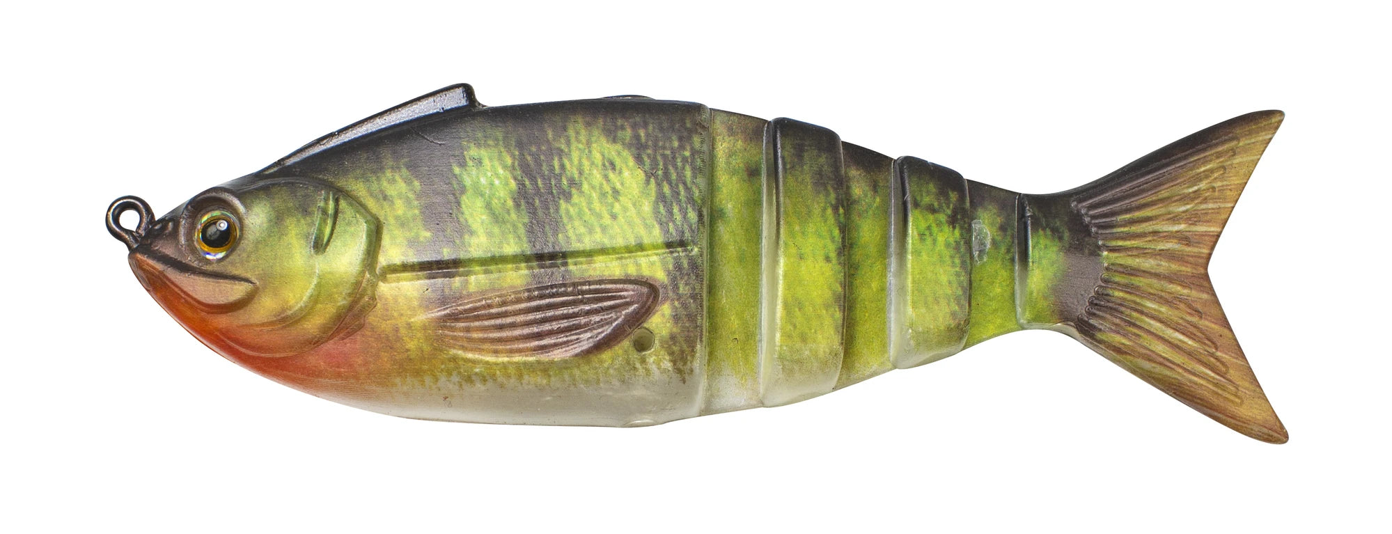 The Lunkerhunt Gambit is a 4 1/2 inch, 5/8 ounce soft body swimbait with a unique weedless design and segmented body. Unlike most soft swimbaits, the Gambit has a hollow body similar to a topwater frog that houses the hook and collapses to expose the bait's 5/0 hook upon a fish's strike. This means the Gambit can go where most swimbaits can't, coming through thick vegetation, brush, timber laydowns, and rocky bottoms with out fear of getting hung up.