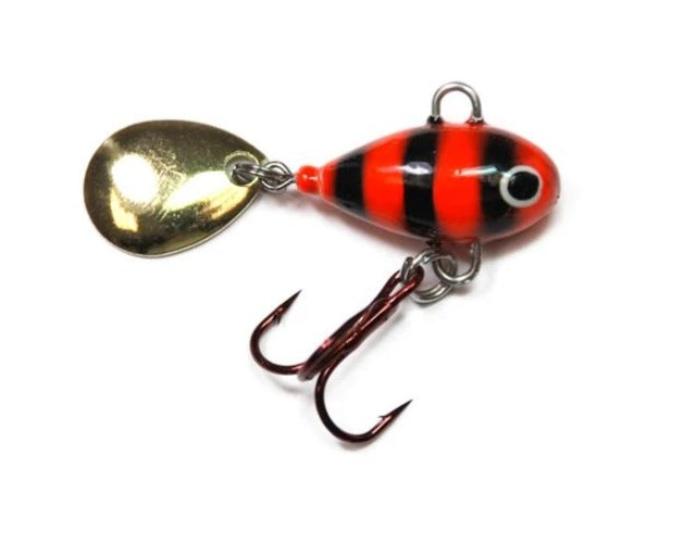 The Lunkerhunt Magic Bean is a downright tiny micro-sized tail spinner lure. Measuring roughly the length of a penny (3/4 inch), it's relatively heavy for its size, weighing in at a 1/4 ounce. It's excellent for both vertical jigging (both ice and open water) and casting, and its rotating tail-mounted Colorado blades provides plenty of thump and flash on the fall/retrieve to attract strikes.