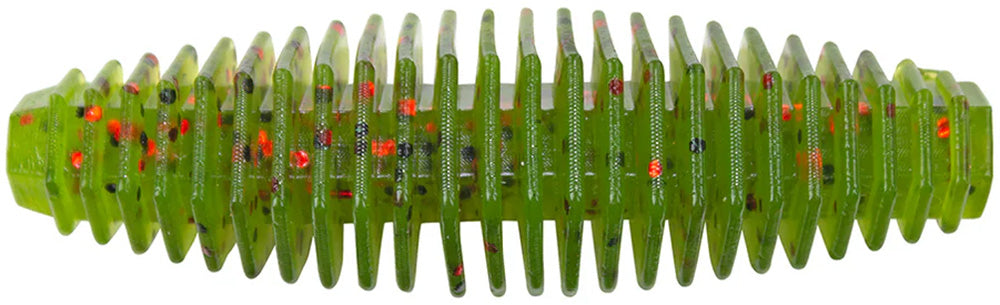 Constructed with HIVE soft plastic, this bait is super soft and stretchy, providing ultra durability and predator resistance, enhanced by its floating action that all combine to distinguish HIVE soft plastics from the rest. Designed with an ultra-ribbed body that displaces a significant amount of water, this relatively small bait creates a massive presence in the water!