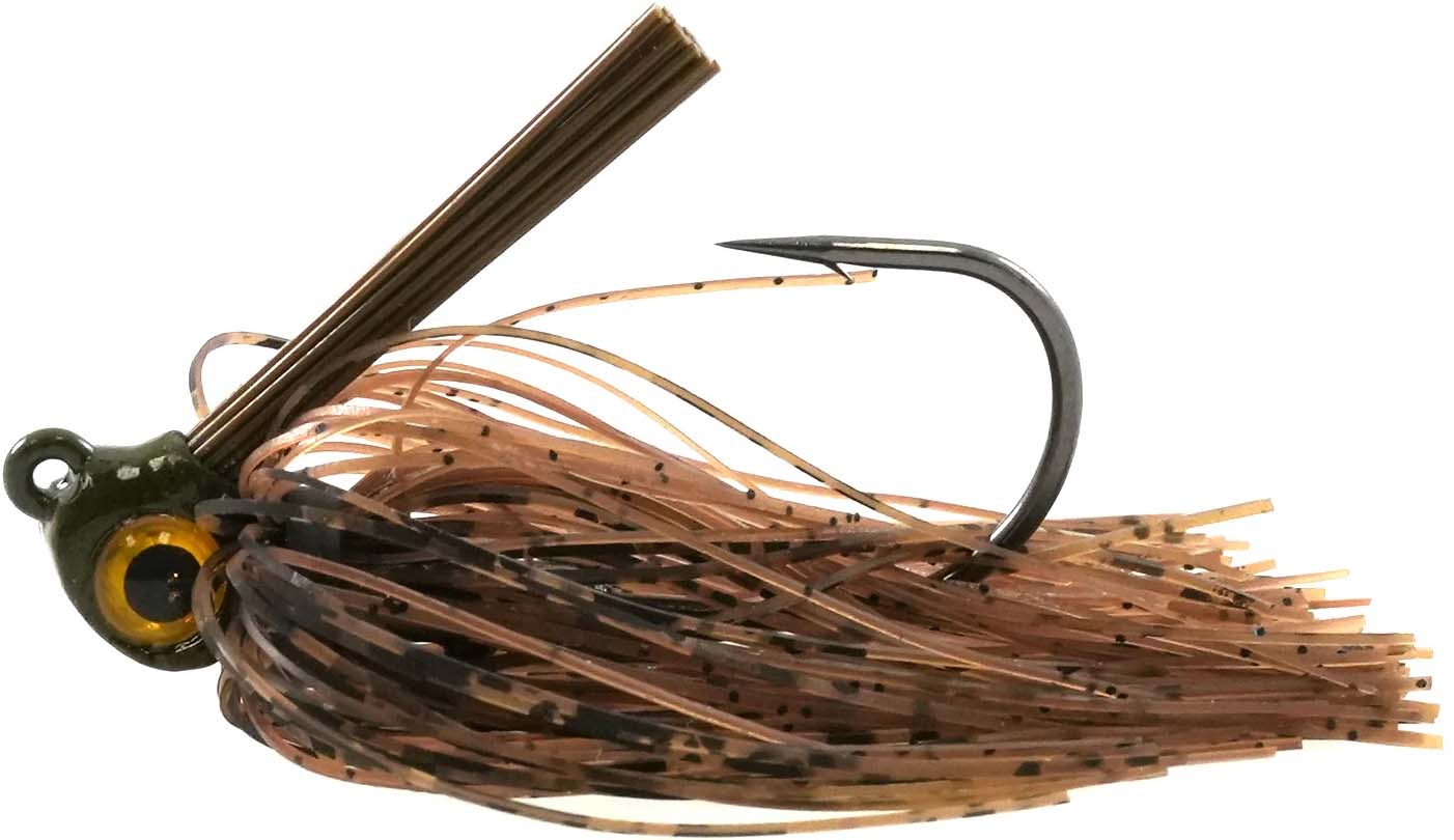 This bait boasts a compact design and a precisely crafted fine cut skirt, along with attention-grabbing 3D eyes on its keeled head, enhancing its visual appeal to fish. Furthermore, the Mini Swim Jig is equipped with a super spike keeper, ensuring that soft plastic bait remains securely attached to the hook throughout your fishing session. With its 30 Degree VMC 3/0 hook, you can rest assured that the hook will stay firmly embedded, leaving no chance for your next big bass to escape.