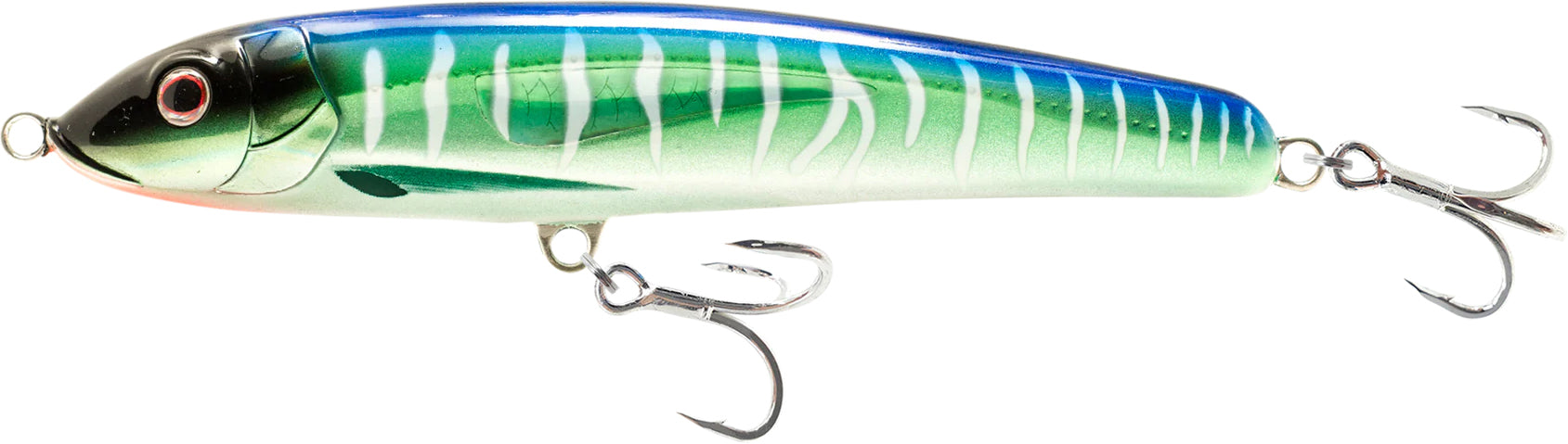 Engineered to operate just beneath the water's surface, the Riptide 125 is crafted for extensive casting range, enticing fish from the depths with its dynamic side-to-side motion during descent and enticing walk-the-dog action upon retrieval. Incorporating Nomad Tech advancements such as the HD ABS and Triple Shield Protection Systems ensures enduring performance, while the Gorilla Through Wire Construction System, welded onto both ends, reinforces the bait's durability, providing assurance against breakage.