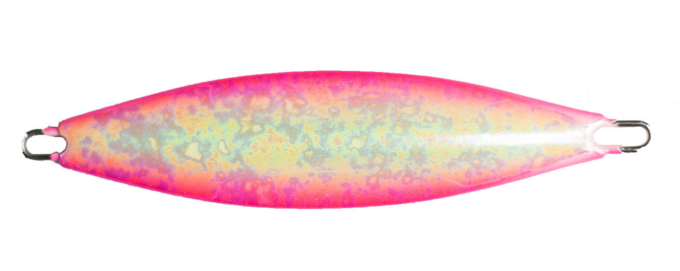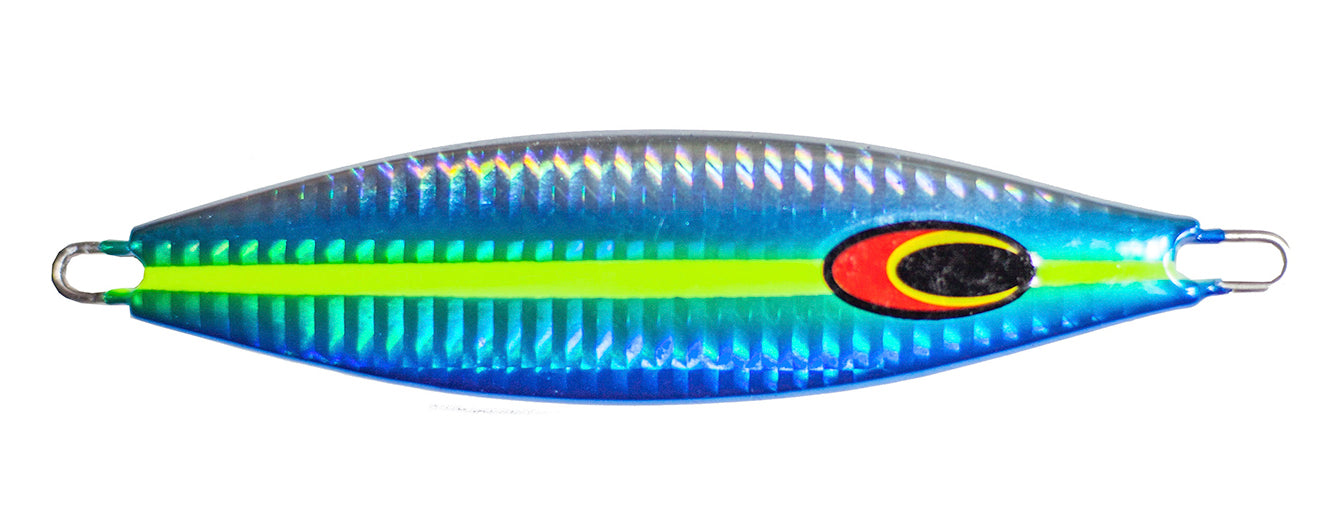 - Center balanced weight causes the jig to flutter as it falls, making it look like a wounded fish.