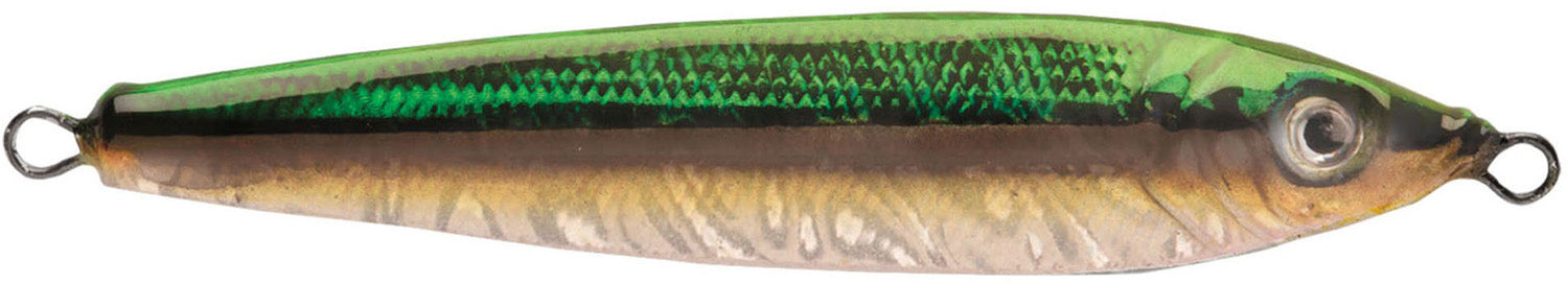 The P-Line Laser Minnow is manufactured with a unique holographic laser tape, creating an amazingly life-like finish. The oblong shape and sharp cuts on the side allow for an erratic action when jigged. This action will trigger strikes from a number of species. This size of Laser Minnows is effective in freshwater for trophy bass, pike, muskie, lake trout, and more as well as saltwater species like striper, salmon, tuna, and dorado.