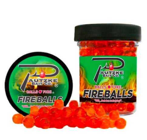 Pautzke Bait Co. Fire Balls Scented Artificial Salmon Eggs are artificial salmon eggs. Pautzke Fire Balls look, smell, taste, and fish like Pautzke's world-famous Balls O' Fire salmon eggs, except they are made from a synthetic biodegradable material and then scented with the same formula used in their Balls O' Fire.