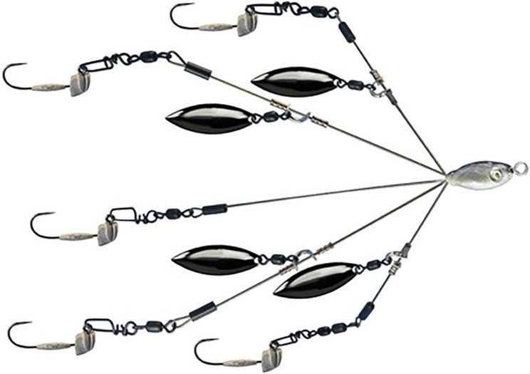 - Designed with a Heat Treated 1/4 inch lightweight wire, 4 Willow Blades for ultimate flash, an extra tough Impact Resistant Head w/Swivel, and 5 Arms enabling the use of up to 5 baits, all while staying at a 4 inch profile!