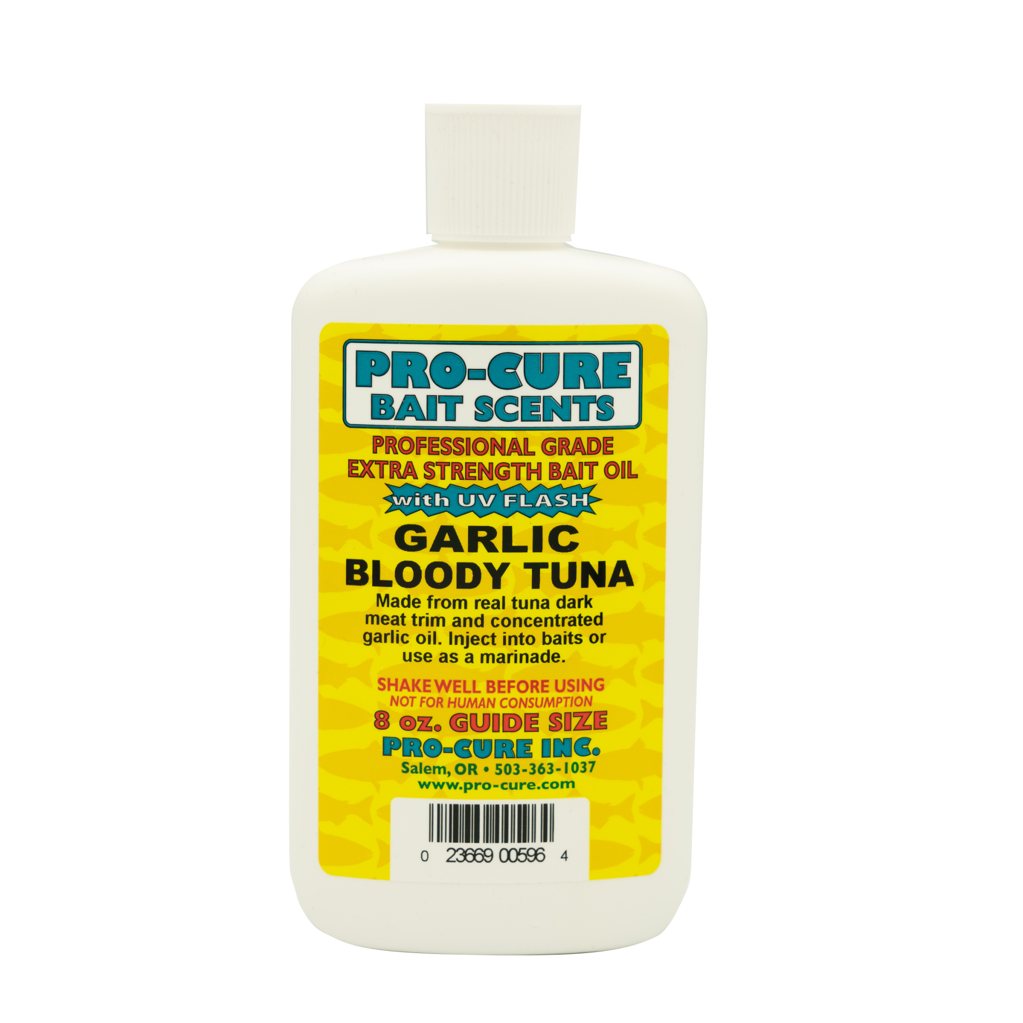 Some of Pro-Cure's most popular Bait Oils include their Anchovy, Sardine, Bloody Tuna, and Garlic scents as well as their Butt Juice, Salmon Slammer, Flounder Pounder, Sturgeon Frenzy, and Carp Spit scent blends. Check out the label on each scent variant's image to learn more about the make-up and best uses for each scent or scent blend.