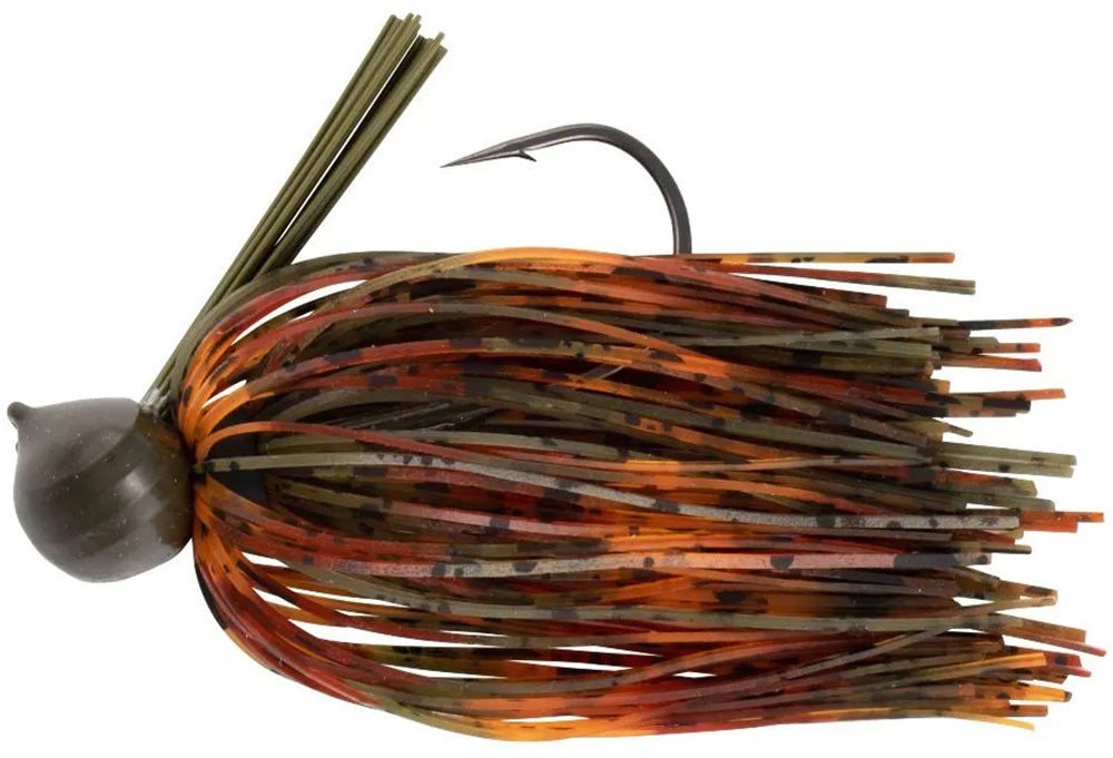 Made in the USA from premium materials, this jig features vibrant, voluminous silicone skirts, a robust weedguard, and a durable lead football head with a chip-resistant finish, ensuring longevity and performance. Its unique keeled football head design, reminiscent of War Eagle's buzzbaits, allows for effortless deflection off cover, minimizing snags!