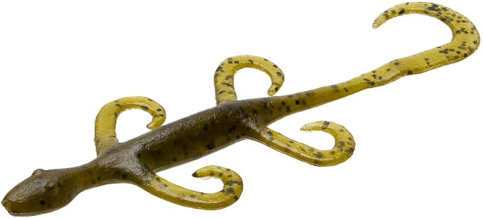 The Zoom Lizard 5 Inch Creature Bait is a proven favorite for targeting big bass, designed to attract and provoke strikes with its lifelike movement and natural profile. Crafted from durable, salt-impregnated soft plastic, it offers enhanced scent release to more effectively entice bass. This bait features a slender body with free-moving legs and a curly tail, all working together to create realistic water disturbance to draw fish from afar. It performs exceptionally well on Texas or Carolina rigs, and can also be effectively used as a trailer on a flipping jig for added movement.